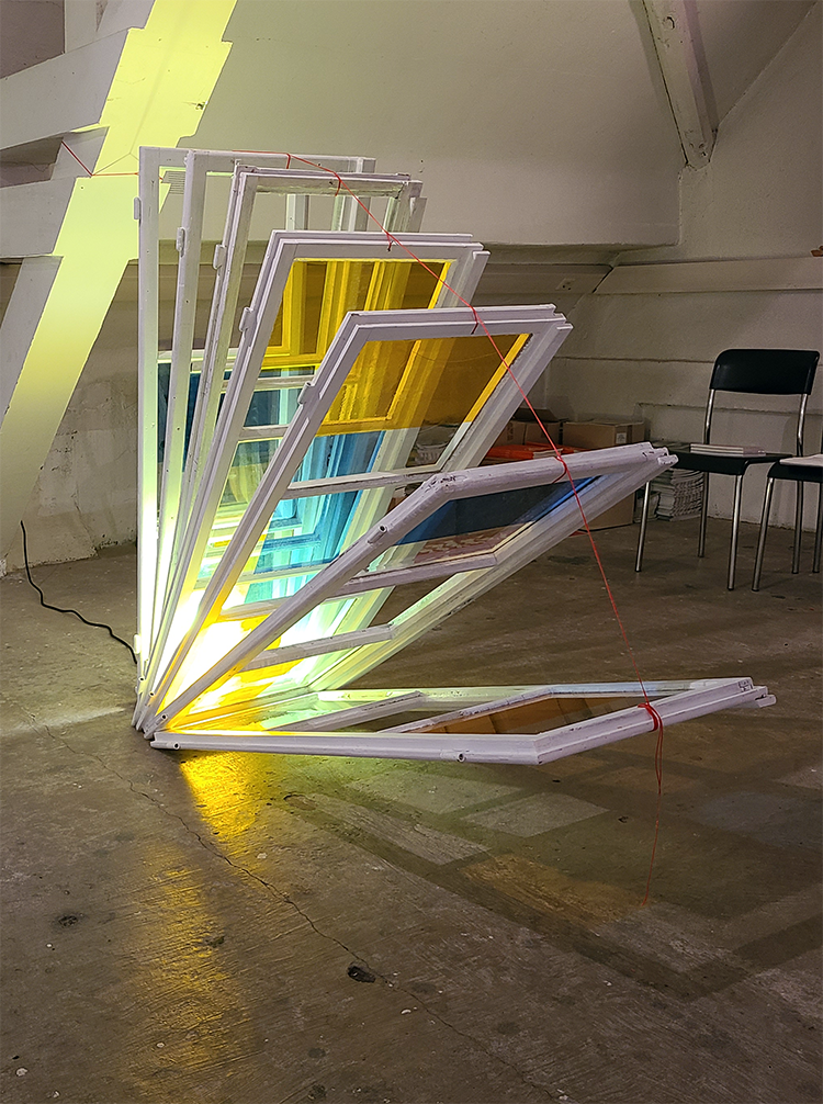 Kastenfenster, Belichtungsfolie, Maurerschnur, 150x150cm, Herbert Brunner und Laurin Mackowitz, 2025